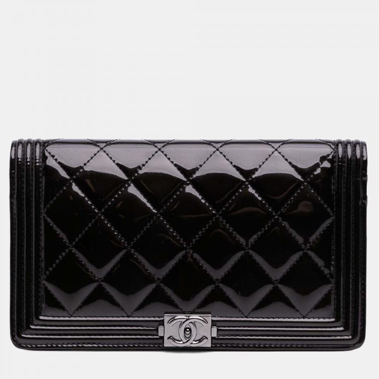 مملوكة مسبقًا محفظة طويلة جلد براءات أسود مبطن شانيل بوي