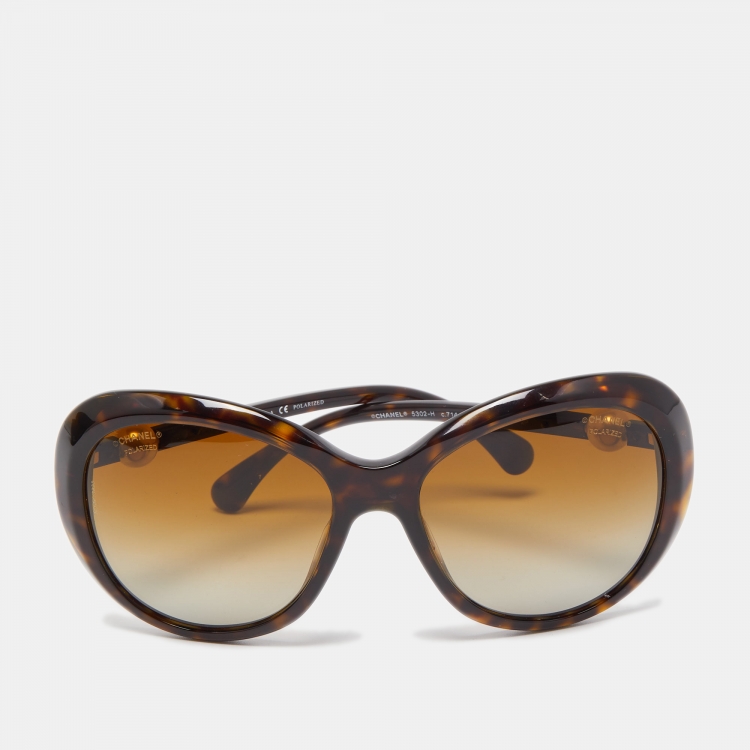 Pre Owned Chanel Brown Tortoise  5302-H CC Pearl Oversized Sunglasses