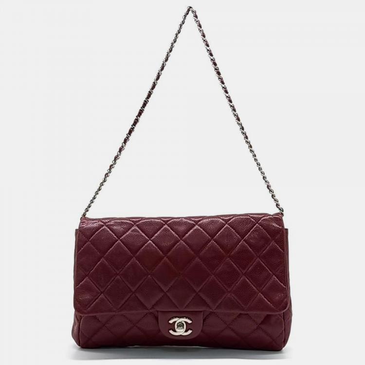 Chanel Burgundy Caviar Leather Clutch Shoulder Bag