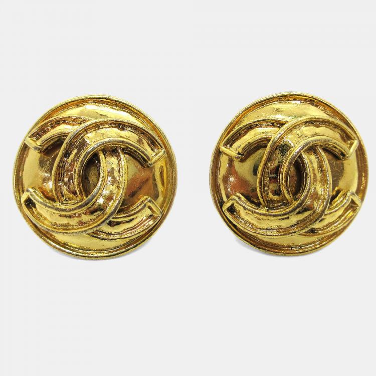 Pre Owned أقراط بشعار شانيل زر مشبك ذهبي
