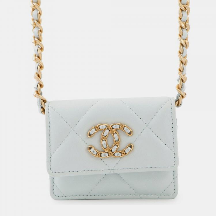 مملوكة مسبقًا محفظة شانيلا 19 بسلسلة جلد خروف
