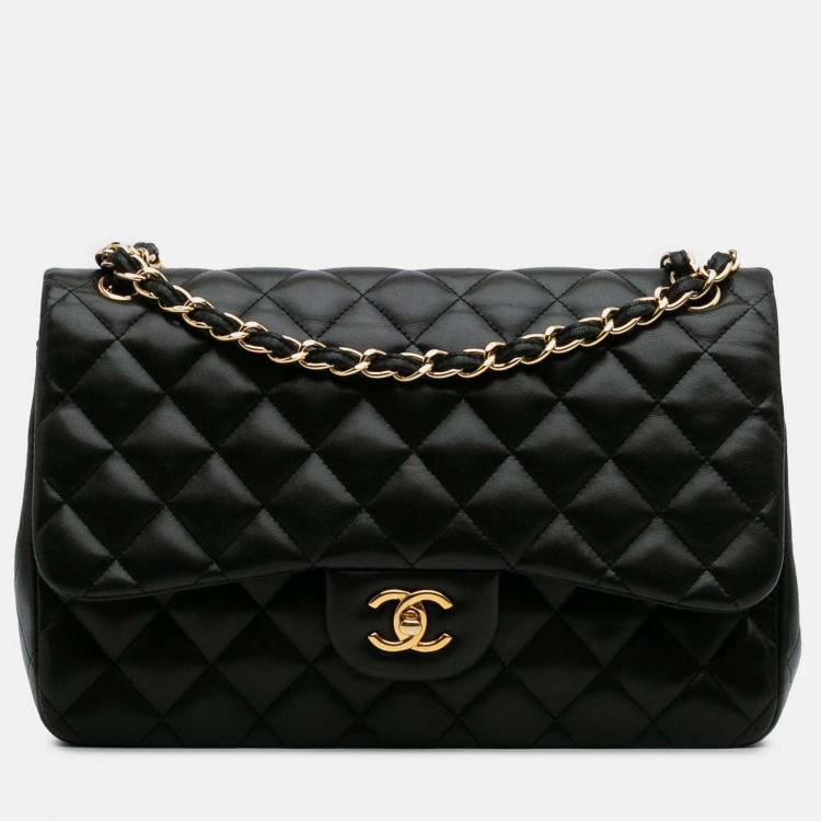 Pre Owned حقيبة كتف ذات رفرف مزدوج شانيل كلاسيك كبير جلد خروف أسود