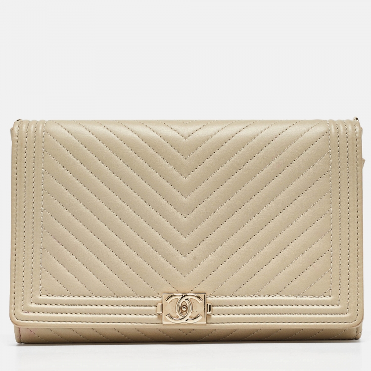 Pre Owned محفظة بسلسلة شانيل بوي جلد كافيار مبطن