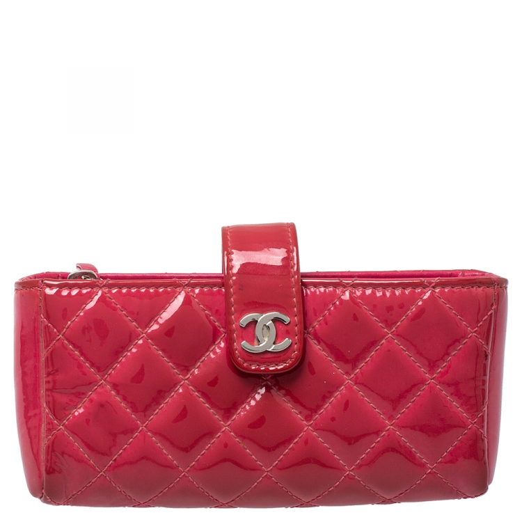 مملوكة مسبقًا حقيبة كلتش حافظة هاتف شانيل مزينة شعار الماركة سي سي جلد لامع مبطن فوشيا