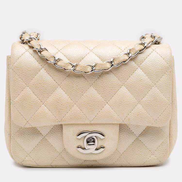 حقيبة شانيل قلاب مفرد مربعة صغيرة كافيار ذهبية كلاسيكية