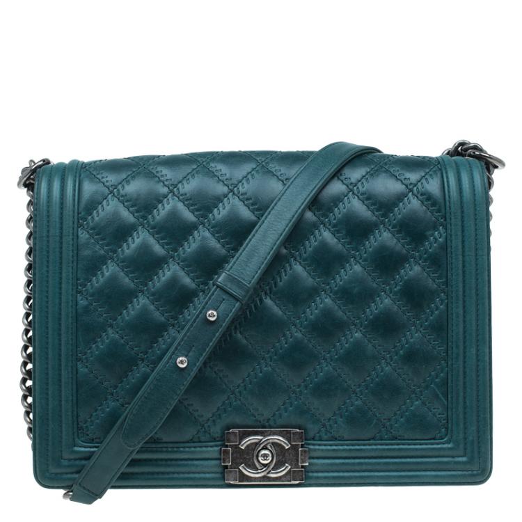 حقيبة يد شانيل بوي بقلاب مطرزة جلد مبطن خضراء كبيرة