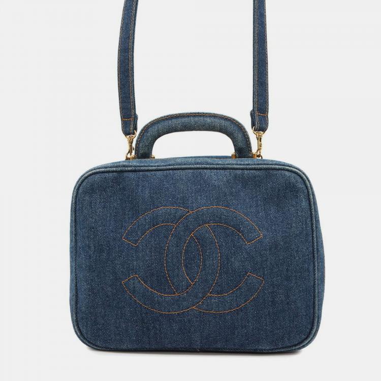 Pre Owned حقيبة شانيل فانيتي جينز أزرق مارك كوكو