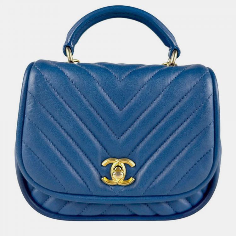 مملوكة مسبقًا حقيبة شانيل باللون الأزرق كتف جلد نموذج حرف في ذهبي