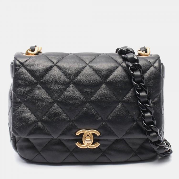 حقيبة شانيل الكتف المتقاطع بسلسلة ماتيلسي جلد أسود سي سي