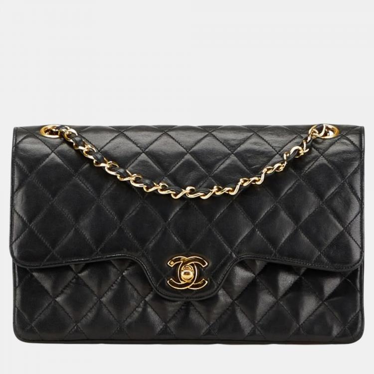 مملوكة مسبقًا حقيبة كتف سلسلة شانيل ماتلاسي كوكو مارك قلاب مزدو�ج جلد خروف أسود