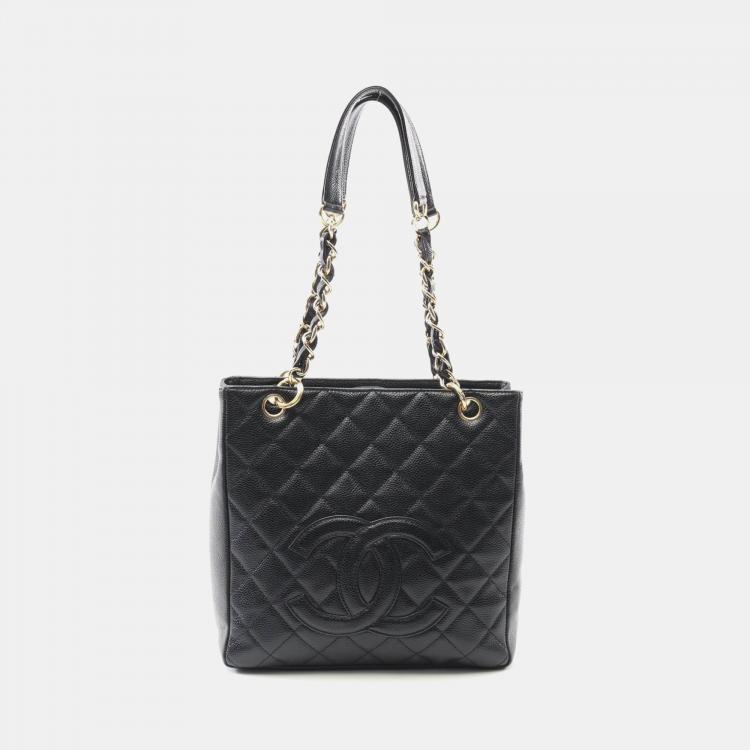 Pre Owned حقيبة كتف شانيل سلسلة توت ماتلاس جلد العجل سوداء