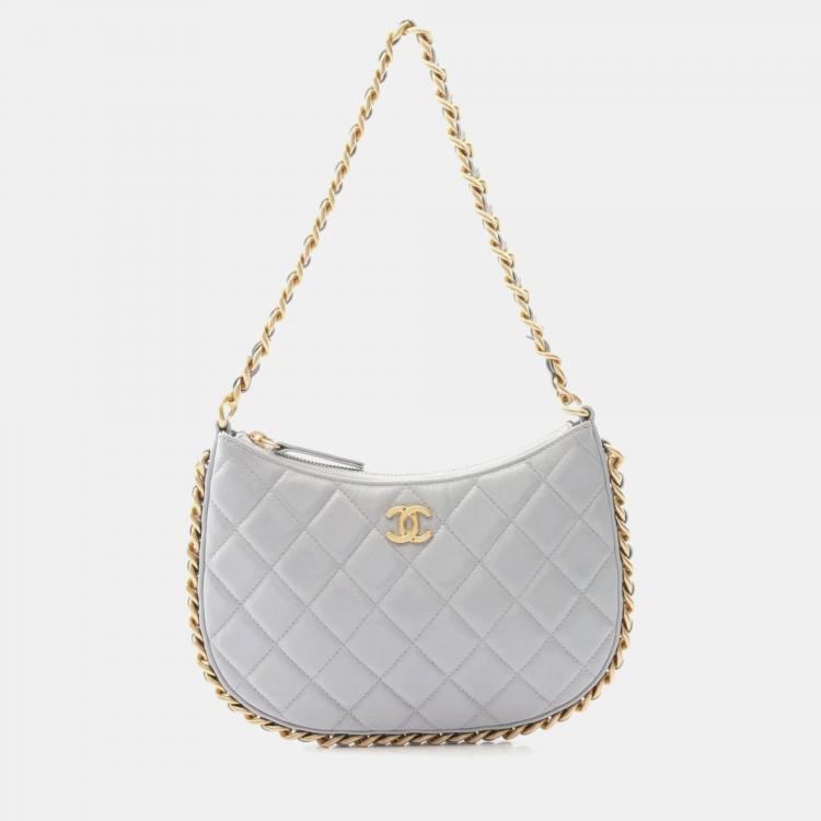 مملوكة مسبقًا حقيبة شانيل ماتلاسيه بسلسلة على الكتف من جلد الغنم بلون رمادي