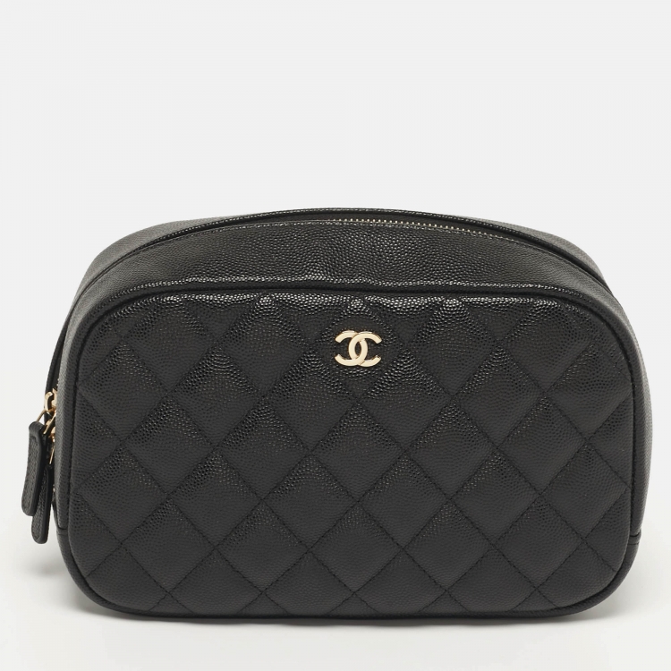 Pre Owned علبة مستحضرات تجميل من شانيل جلد كافيار مبطن متوسط أسود منحني