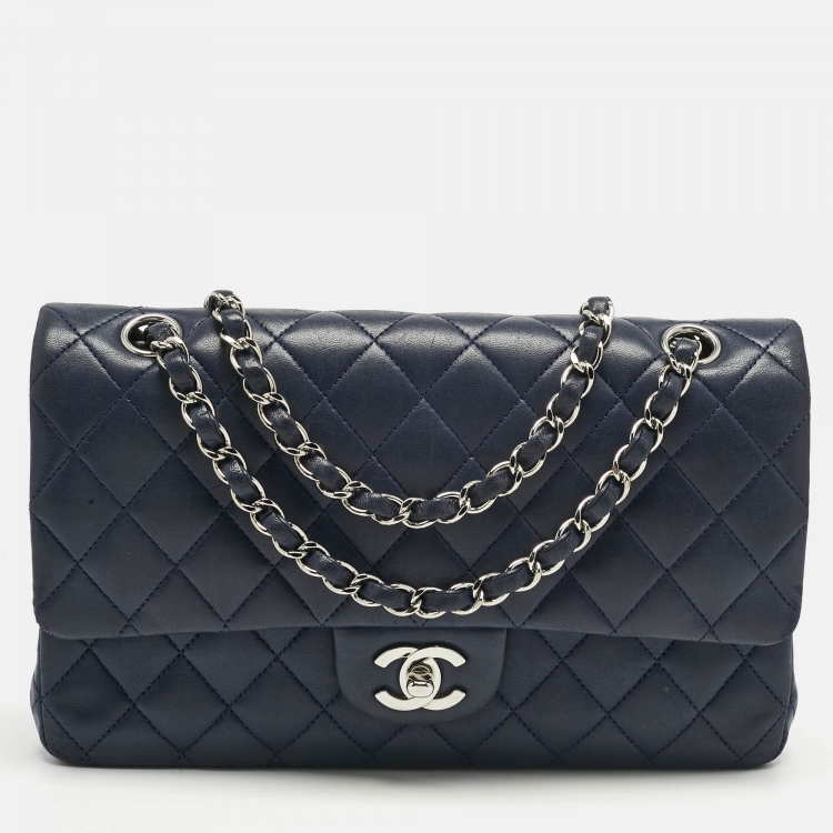 حقيبة شانيل كلاسيك جلد أزرق كحلي متوسطة بقلاب مزدوج
