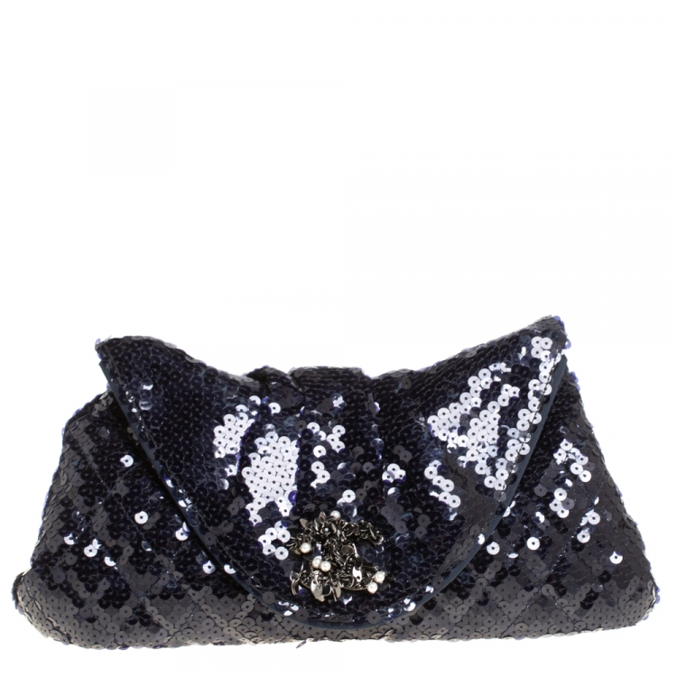 Pre Owned حقيبة كلتش شانيل هاف مون سي سي ترتر كحلي