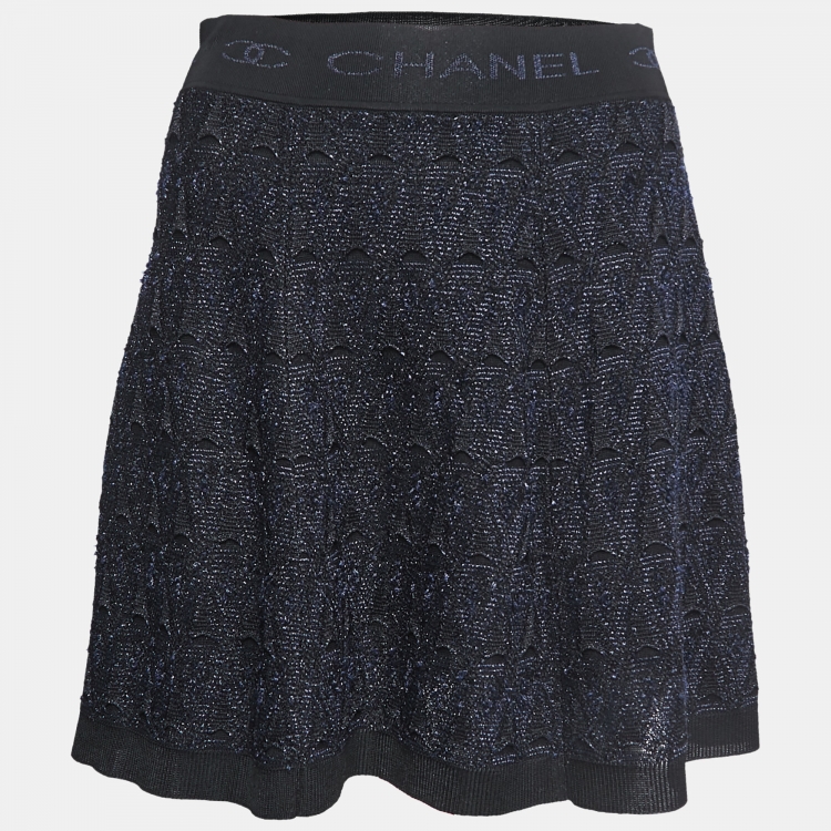 مملوكة مسبقًا Chanel Navy Blue/Black Textured Knit Elastic Logo Waistband Mini Skirt S
