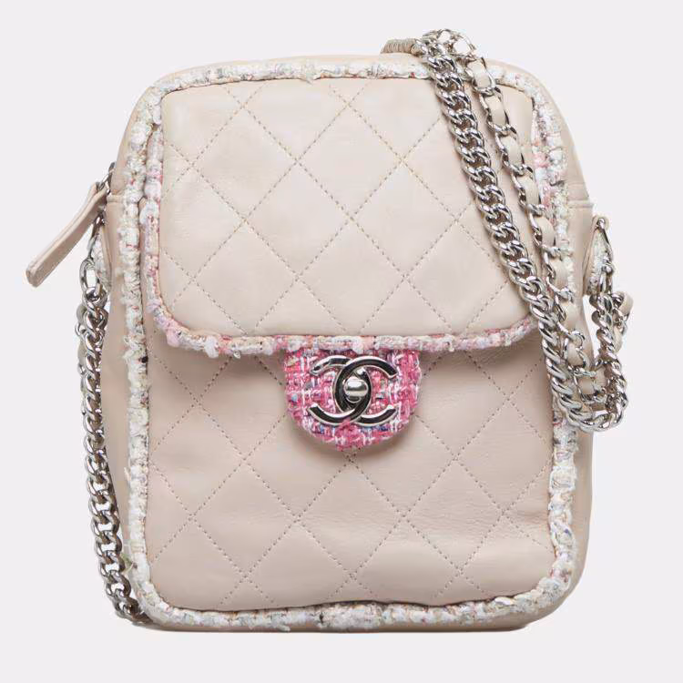 Pre Owned حقيبة كروس شانيل تويد أنيق وردي