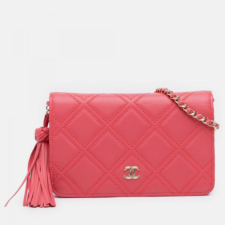 مملوكة مسبقًا محفظة شانيل على سلسلة جلد الغنم مبطن بغرز مزدوجة وشرابة