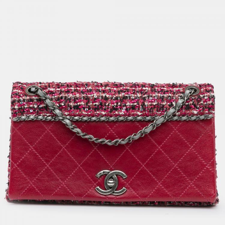 حقيبة شانيل فلاب جلد حمل وتويد سي سي أحمر
