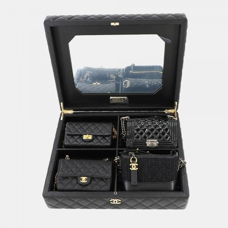 مجموعة شانيل قصة النجاح 4 حقائب صغيرة بنمط مبطن لون أسود مع صندوق