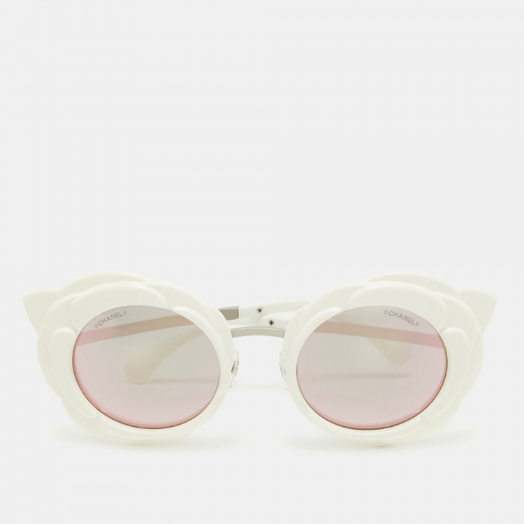 Pre Owned Chanel White 71198 Camellia Round Sunglasses