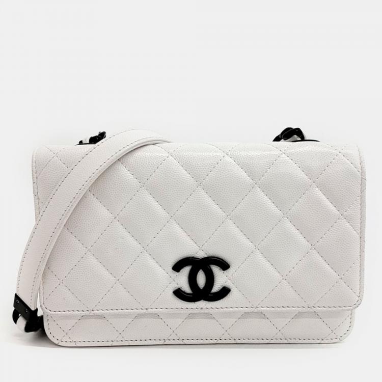 Pre Owned حقيبة شانيل كروس بودي جلد كافيار أبيض