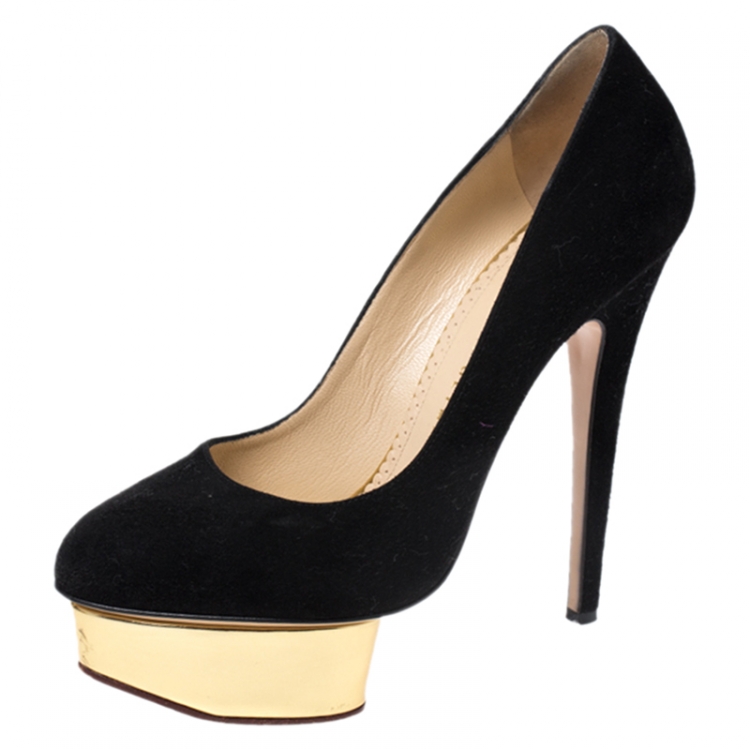 حذاء كعب عالي شارلوت أوليمبيا نعل سميك دولي سويدي أسود مقاس 37.5