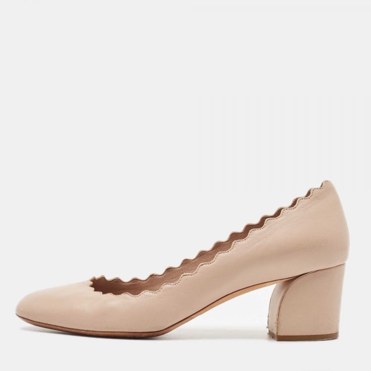 Chloe Beige Leather Laurena Scalloped Pumps Size 37