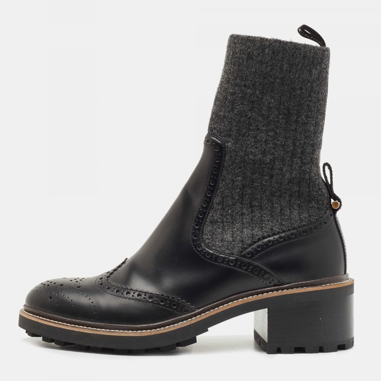 Chloe Black Leather and Fabric Ankle Boots Size 38