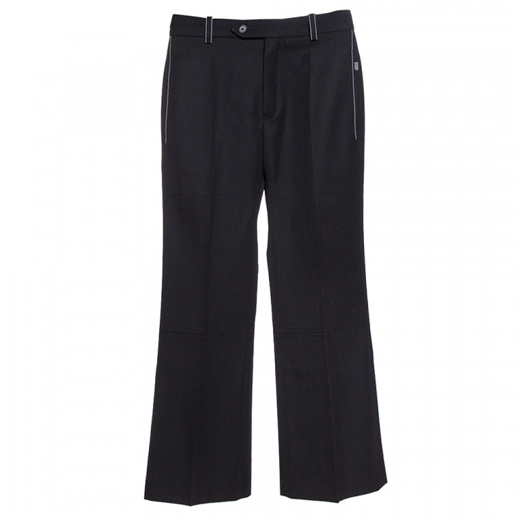 Pre Owned بنطلون كلوي أرجل مستقيمة قصير غباردين صوف أسود مقاس صغير (سمول)