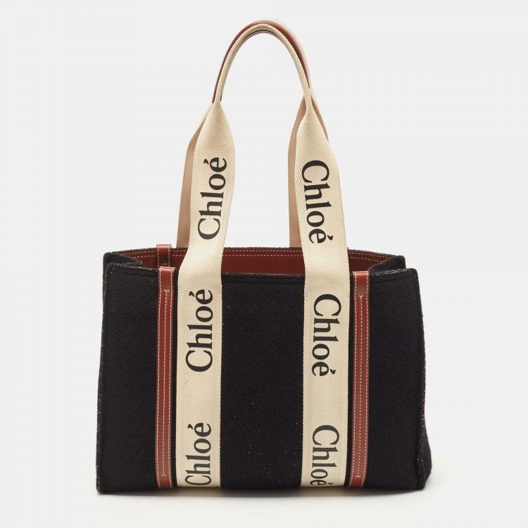 حقيبة يد توتس كلوي وودي جلد وصوف بيج/أسود متوسطة