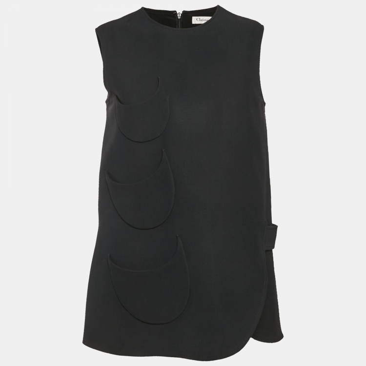مملوكة مسبقًا قميص كريستيان ديور صوف أسود وحرير كريب بتفاصيل رقعة مقاس متوسط