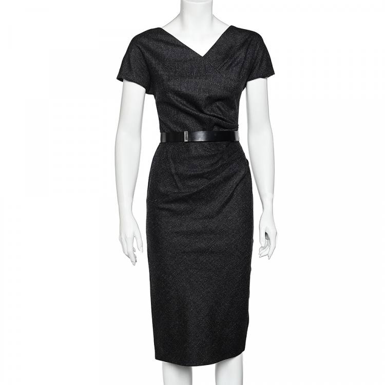 مملوكة مسبقًا فستان ميدي كريستيان ديور صوف رصاصي فحمي بديرابيه مزين مقاس �صغير - سمول