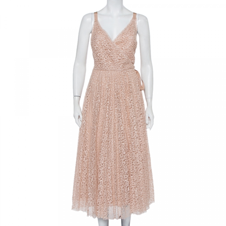 Christian Dior Light Pink Lace Sleeveless Midi Wrap Dress S
