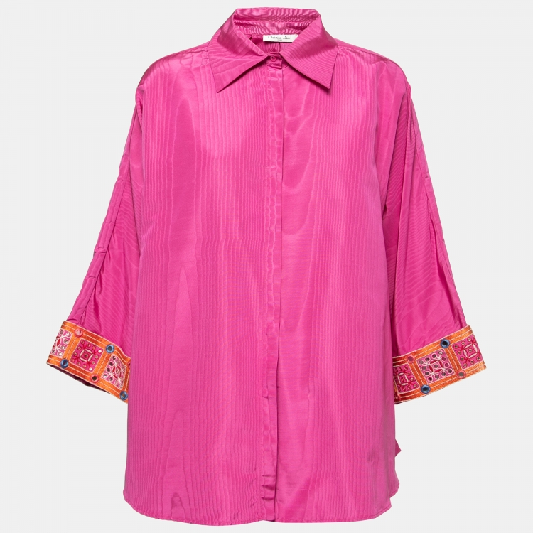 Pre Owned Christian Dior Pink Silk Moire Cuff Embellished Shirt M