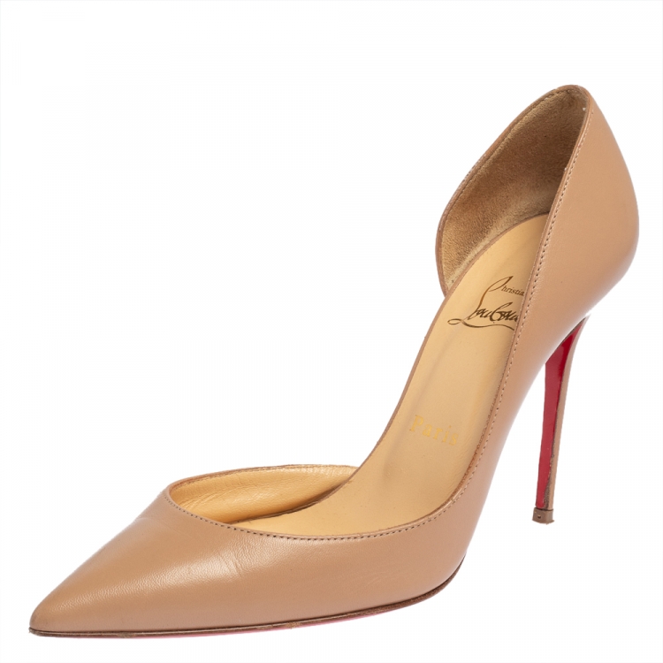 Pre Owned حذاء كعب عالي كريستيان لوبوتان إيرزا دورسي جلد بيج مقاس 37.5