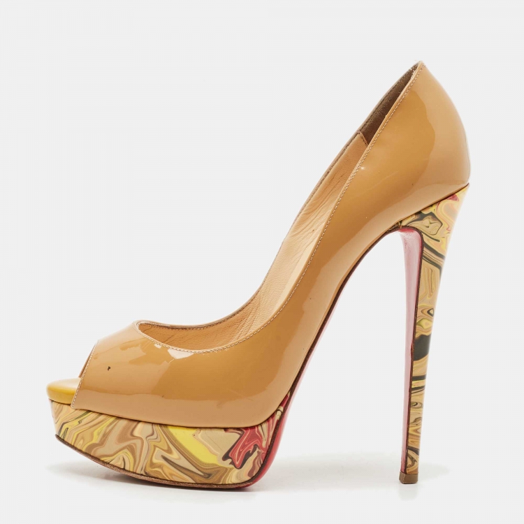 مملوكة مسبقًا حذاء كعب عالي كريستيان لوبوتان ليدي بيب جلد لامع بيج مقاس 38.5