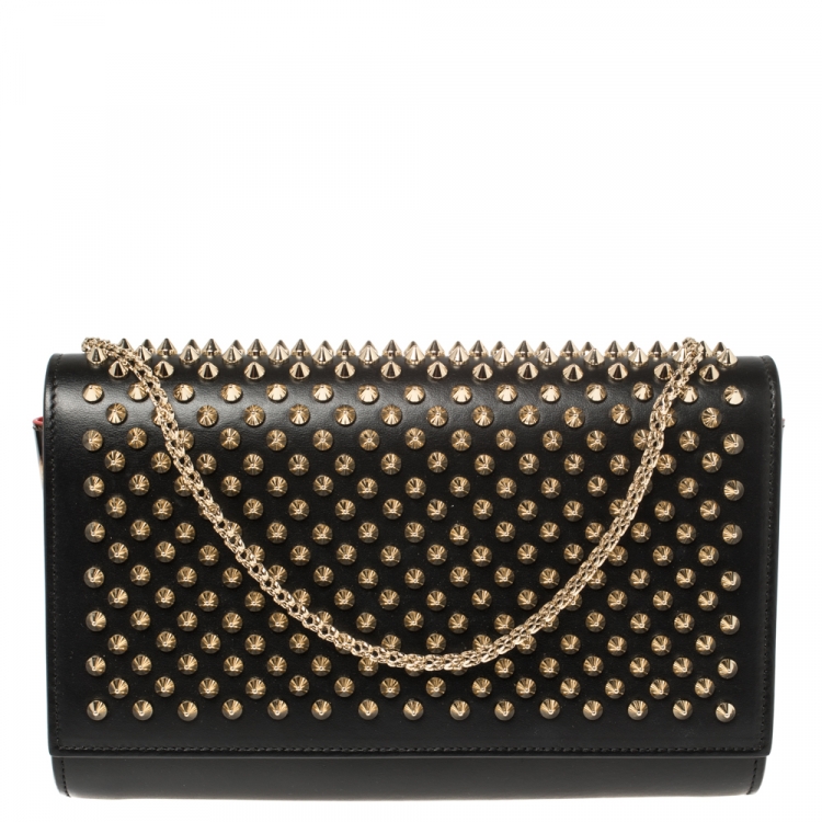 حقيبة كلتش كريستيان لوبوتان بالوما جلد أسود مرصعة