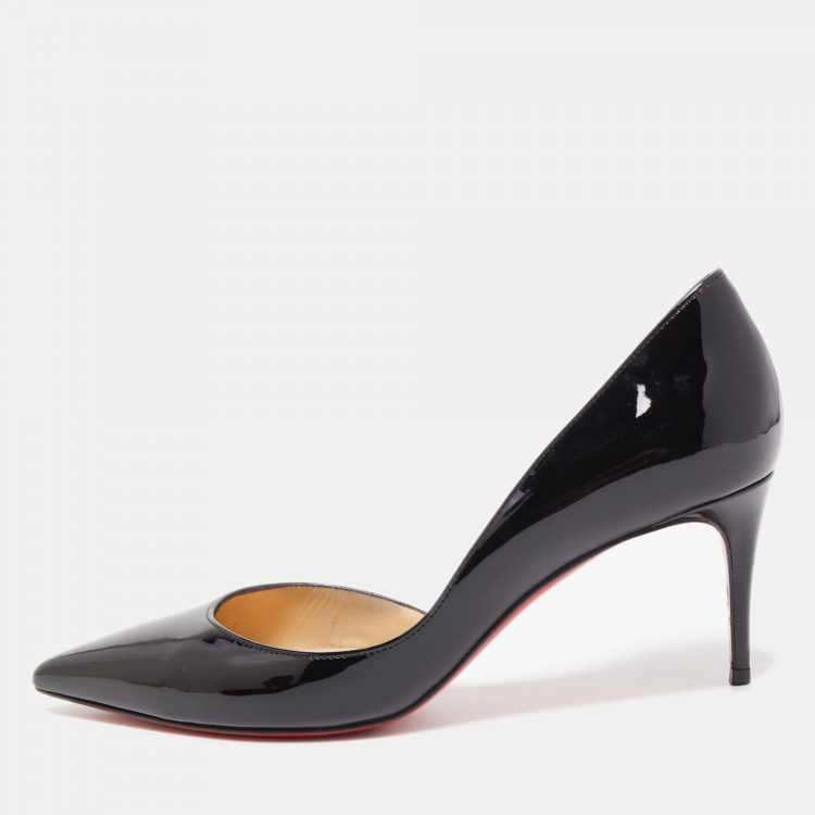 Christian Louboutin Black Patent Leather Iriza D'orsay Pointed Toe Pumps Size 37.5