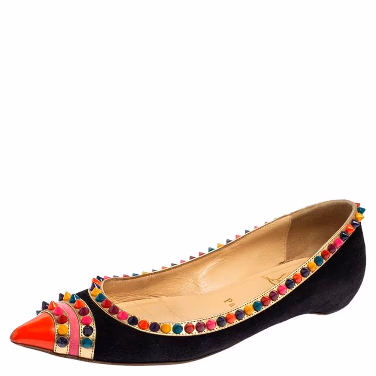 حذاء باليرينا فلات كريستيان لوبوتان سويدي أسود مزخرف مقاس 35.5