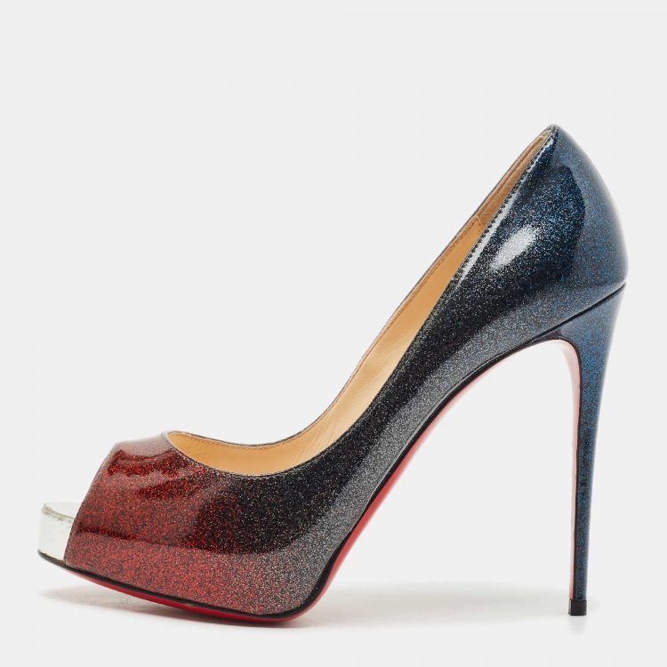 Pre Owned حذاء كعب عالي كريستيان لوبوتان نيو فيري بريف جلد أومبريه لامع أحمر/أسود مقدمة مفتوحة مقاس 38.5