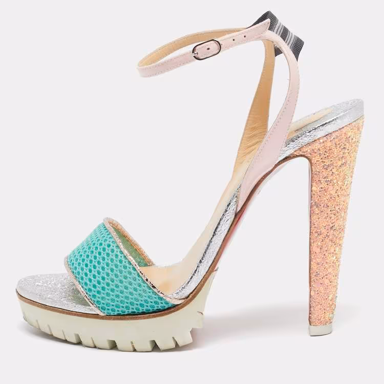 Pre Owned صندل كريستيان لوبوتان فولوميتريك سير كاحل نعل سميك قماش و جلد متعدد الألوان مقاس 38