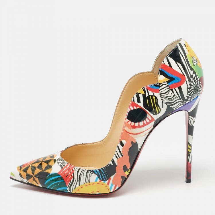 Christian Louboutin Multicolor Printed Patent Leather Hot Chick Pumps Size 39