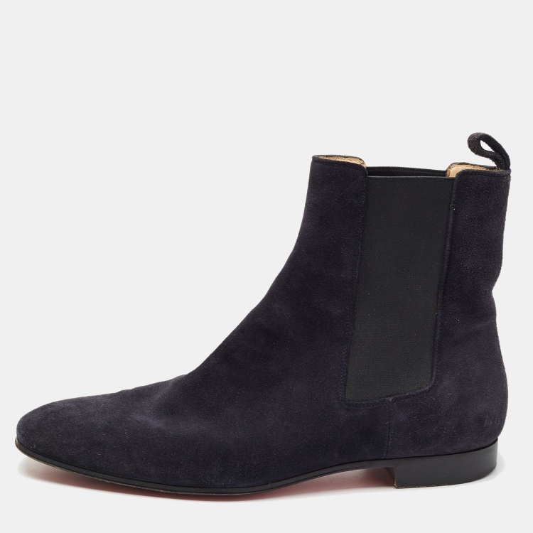 Christian Louboutin Navy Blue Suede Chelsea Boots Size 40