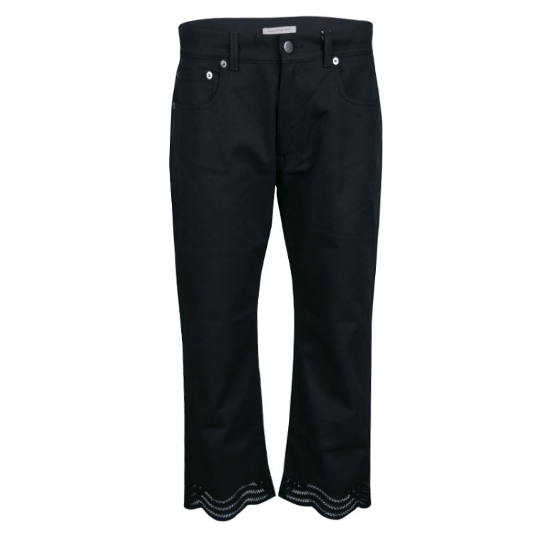 Pre Owned بنطلون جينز كريستوفر كين أسود بحافة مطرزة قصير S