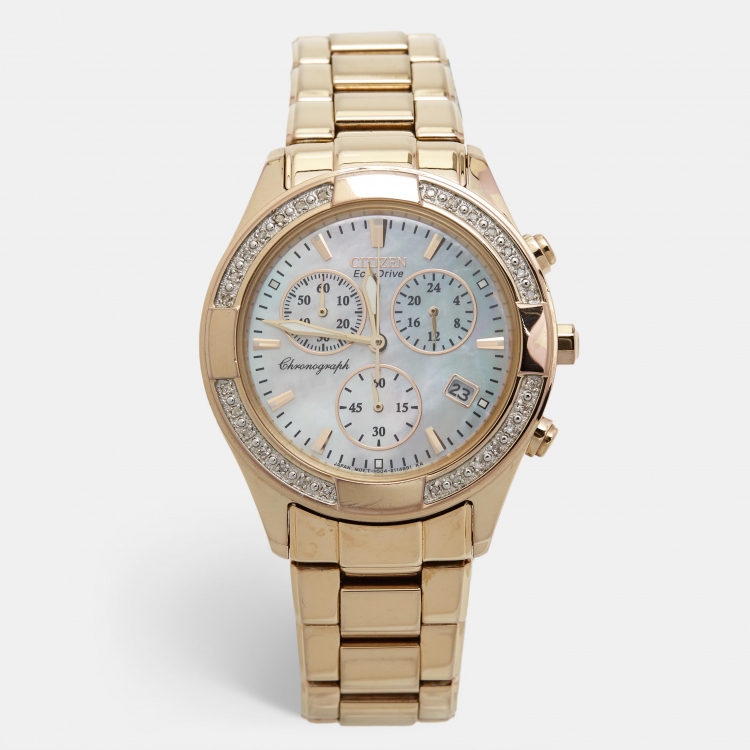Citizen Mother of Pearl Gold Plated Stainless Steel Regent FB1223-55D Women's Wristwatch 35 mm