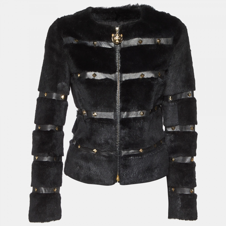 Class by Roberto Cavalli Black Fur & Faux Leather Studded Jacket M