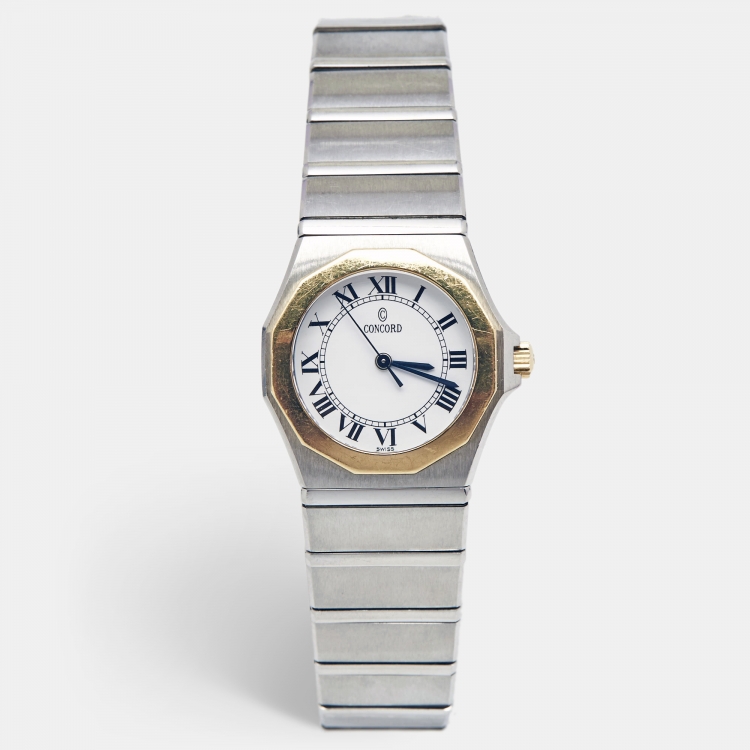 مملوكة مسبقًا Concord White 18k Yellow Gold Stainless Steel Mariner 15.57.1500 Women's Wristwatch 27 mm