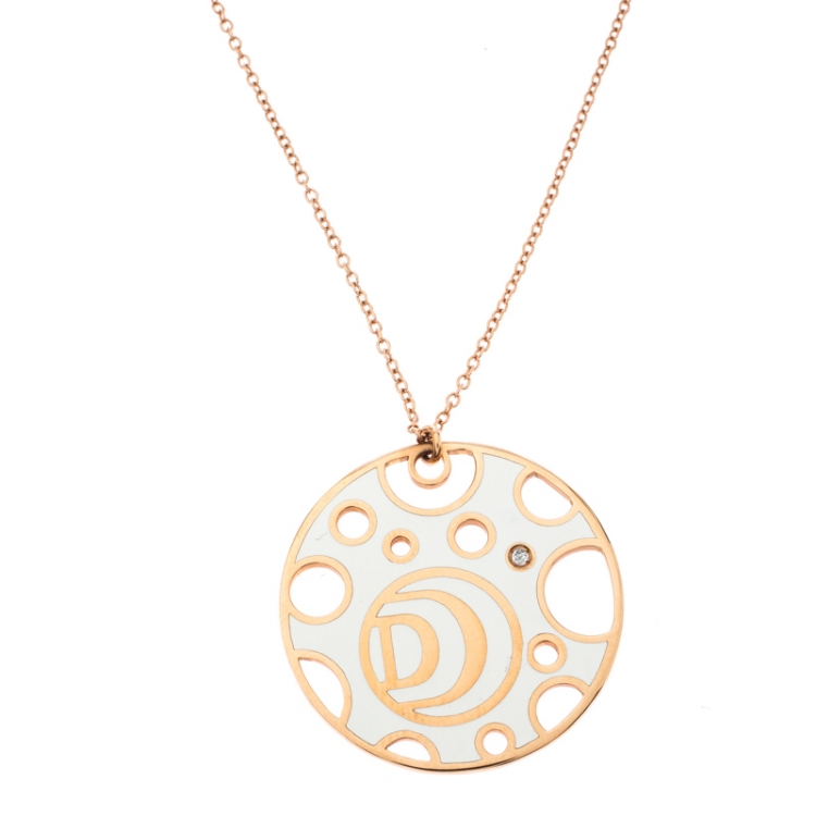 Pre Owned قلادة دامياني داميانيسيما دلاية وجهين ألماس و سيراميك و ذهب وردي عيار 18