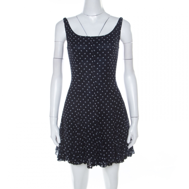 فستان سكيتر دي آند جي كريب أزرق كحلي وأبيض مطبوع بلا أكمام S